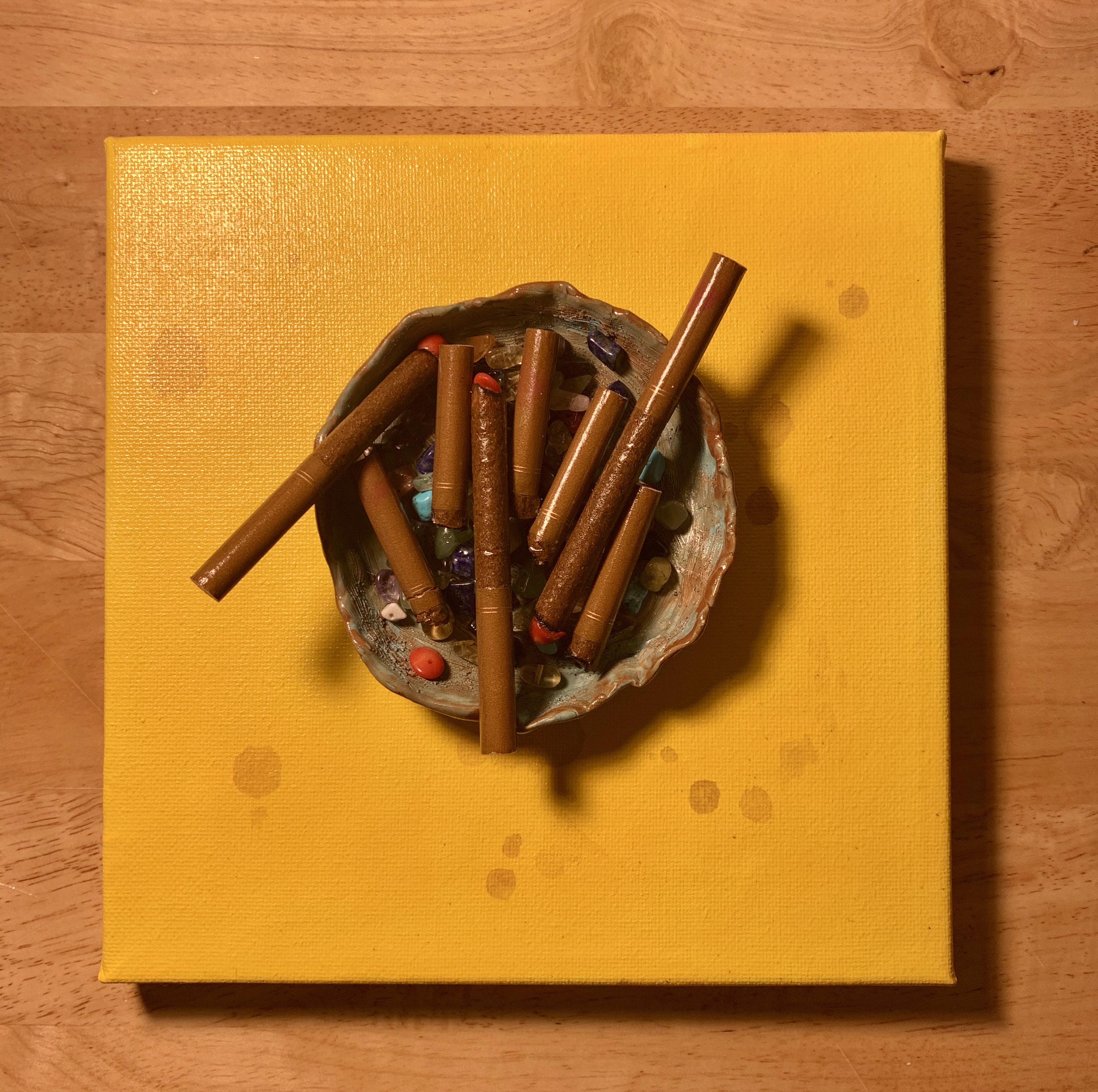 I don’t lack imagination but I often lack energy. When I do find it, I like to create pieces that are primitive, colorful, and capture time and space. I also like animals…A LOT. I like to utilize materials around me and bring them together in one cohesive piece. I find beauty in the ugly and mundane. I’m currently working on bigger action pieces that require a lot of motion and self-awareness.