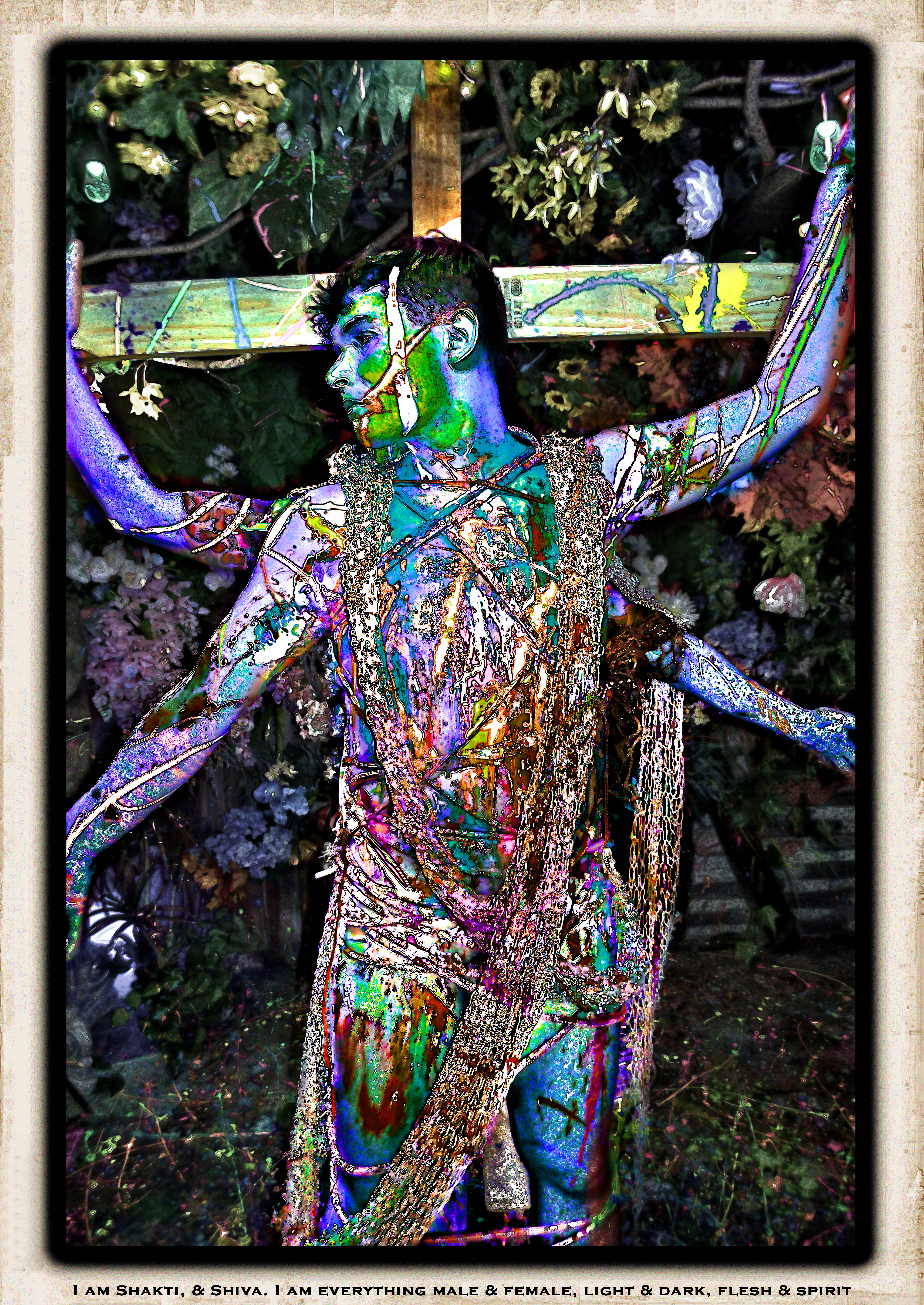 The Technicolor Dreamscape is a series of intense neon body paintings. Lights, sets and body paint are used together to create an abstract dream world, where the human form shifts and becomes aspects of spirit creatures dwelling in the technicolor dreamscape.
